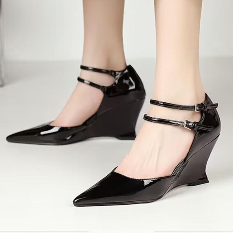 Женские модные босоножки на танкетке с пряжкой на высоком каблуке, сексуальные босоножки с острым носком из искусственной кожи, однотонные туфли для вечеринок 35-40 — купить товар онлайн с бесплатной доставкой по всему миру!