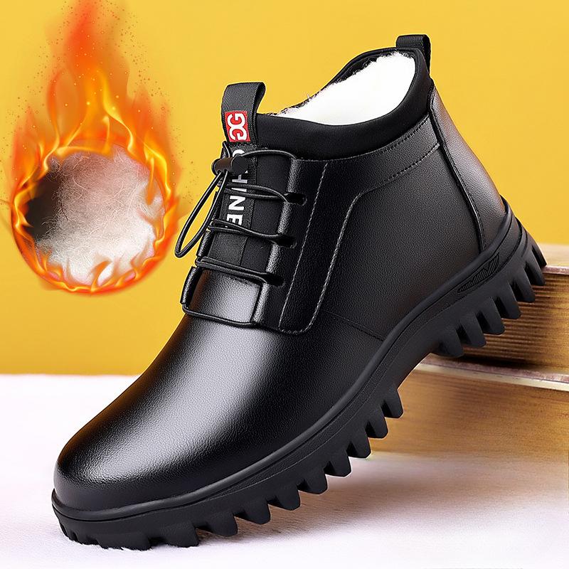 Мужская зимняя кожаная обувь, новая мода, плюшевые, теплые, удобные, нескользящие, деловые, хлопковые, повседневные, зимние ботинки для отдыха