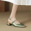 Роскошные атласные туфли на высоком каблуке с квадратным носком, женские модные дизайнерские босоножки, женские зеленые туфли-лодочки с открытой пяткой, женские туфли-лодочки Muller