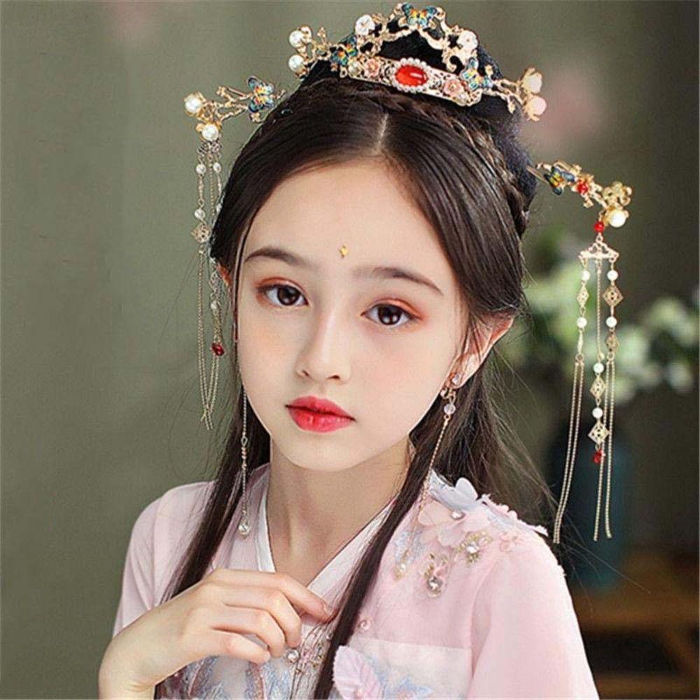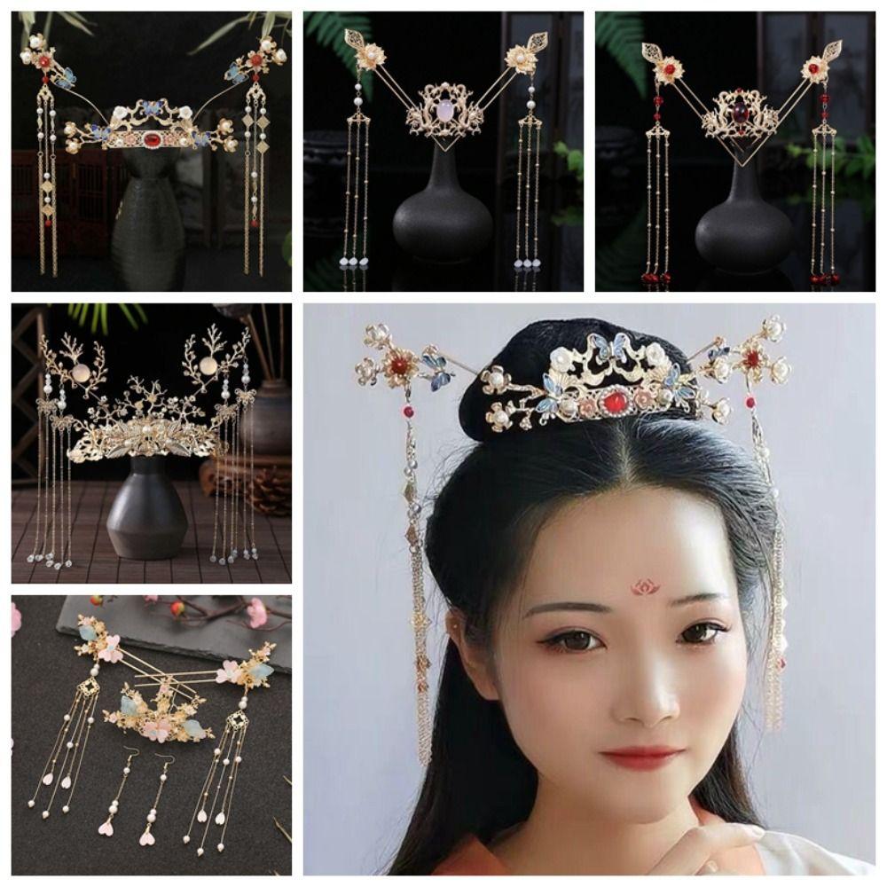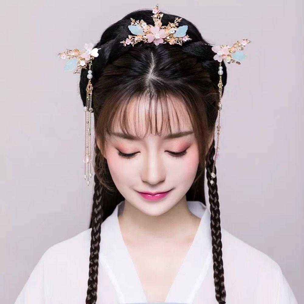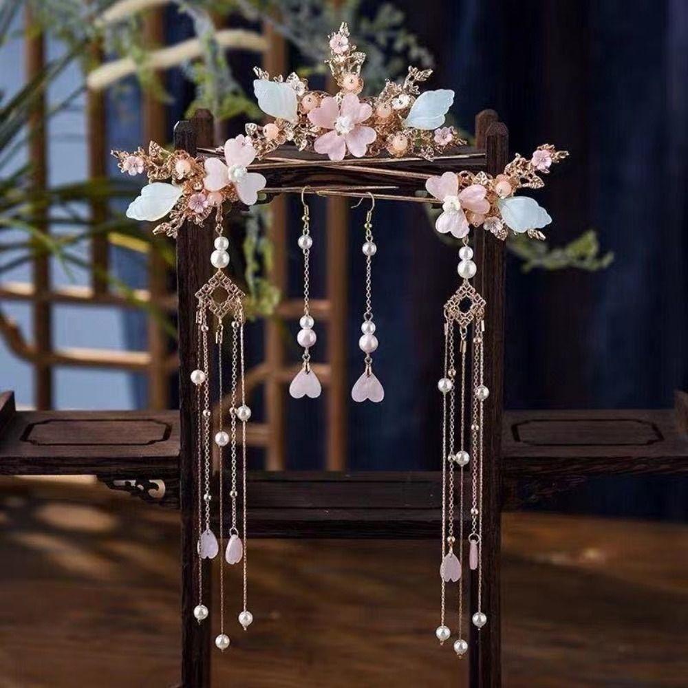 Pearl Hanfu Hair Stick Set Butterfly Chinese Style Hair Clip Fashion Flower Tassel Hairpin Daily