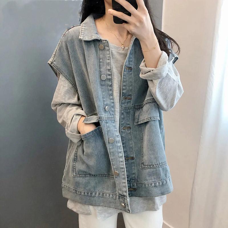Джинсовый жилет без рукавов, женский осенний свободный однотонный пиджак в стиле вестерн, куртка-кардиган, куртка-кардиган — купить товар онлайн с бесплатной доставкой до всему миру!