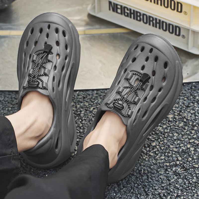 Мужские сандалии 2025 Лето Новые Персонализированные Модные Спортивные Повседневные Перфорированные Туфли Высокое Качество ЭВА Противоскользящие Пляжные Туфли Мужские