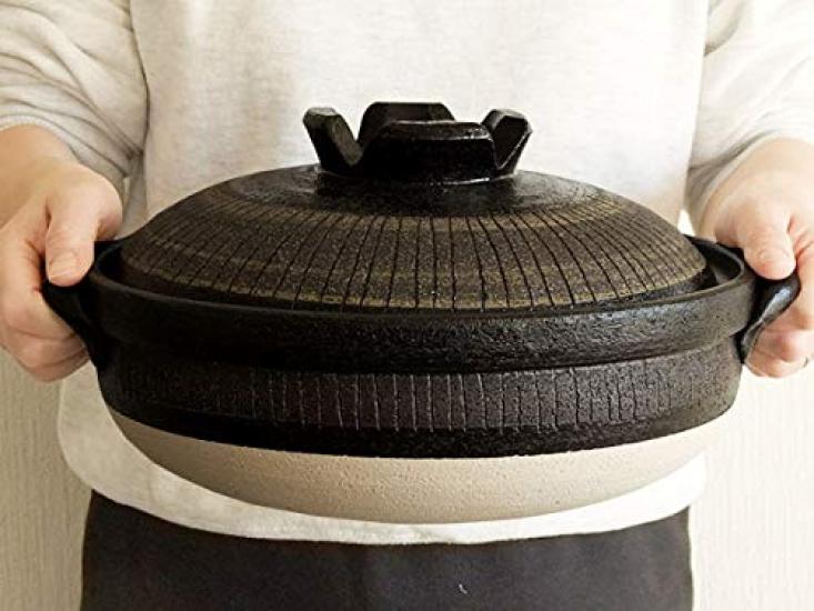 Глубокий глиняный горшок Kurojukusa, жаропрочный, для использования на открытом огне, размер 10, на 5-6 человек, сделано в Японии, изделия Banko