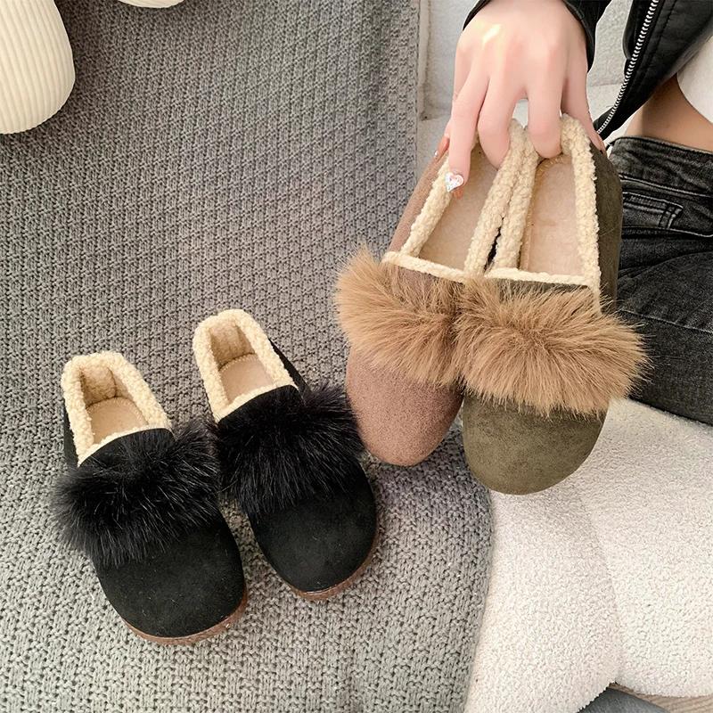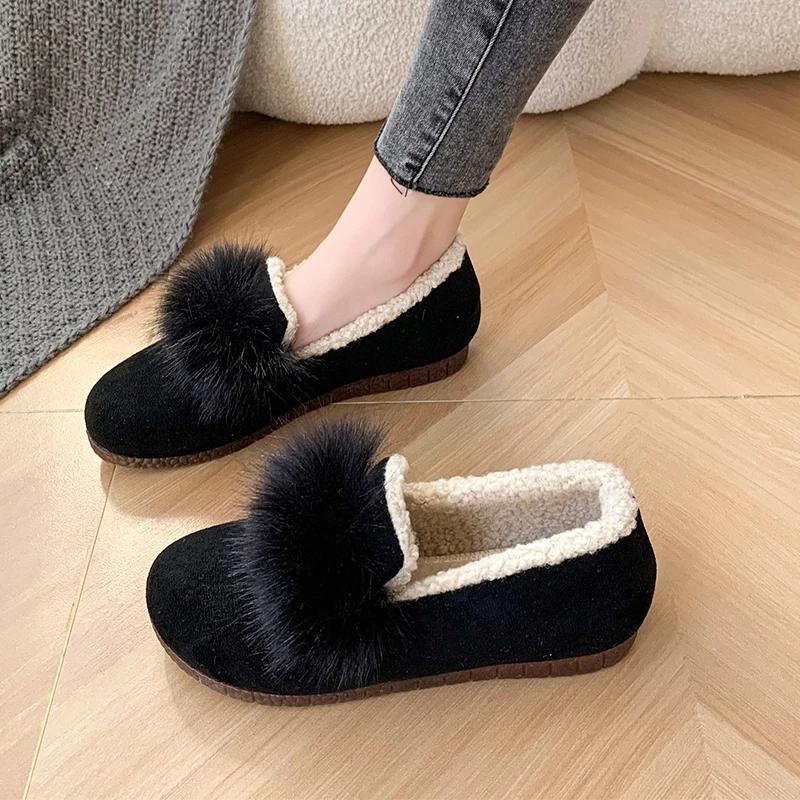 Женские туфли на плоской подошве с круглым носком для теплых прогулок, зимняя мода 2024 года, новая повседневная хлопковая обувь для путешествий