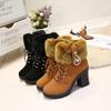 2024 зимние туфли на толстом каблуке со стразами и мехом, короткие туфли Botas Mujer, однотонные, со шнуровкой спереди, нескользящие, на высоком каблуке, большого размера для женщин