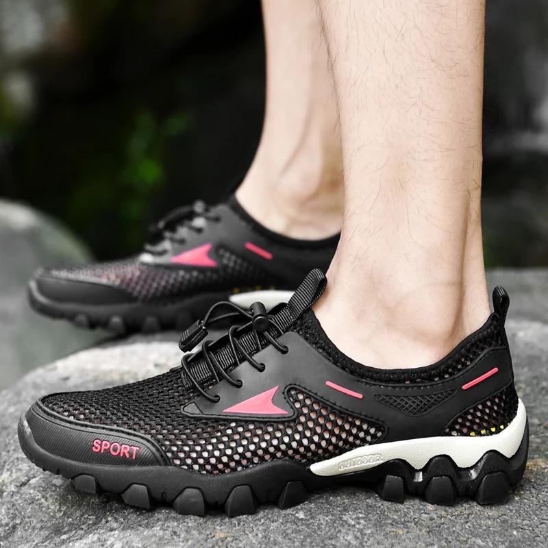 Летние мужские повседневные кроссовки, дышащие сетчатые сандалии, мужские мягкие мокасины, забродная обувь, нескользящая мужская обувь для походов на открытом воздухе, пляжная обувь