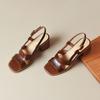 Женские босоножки в винтажном стиле, модные босоножки на высоком каблуке с квадратным носком и ремешком на щиколотке, летние повседневные кожаные босоножки на блочном каблуке