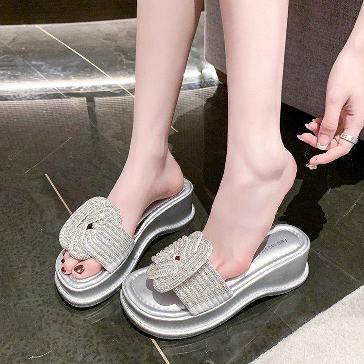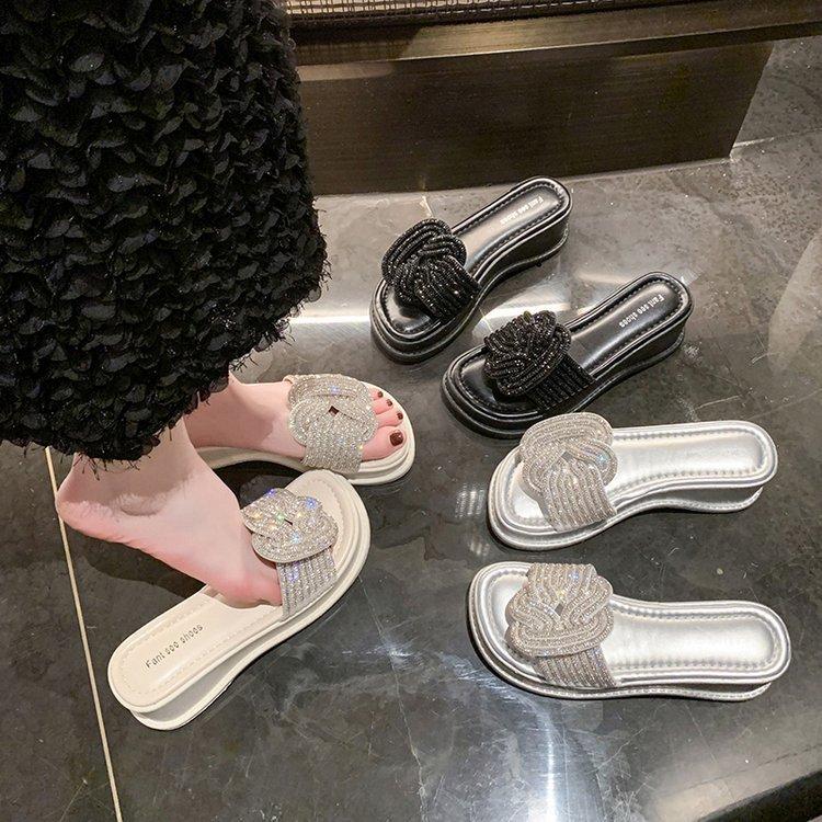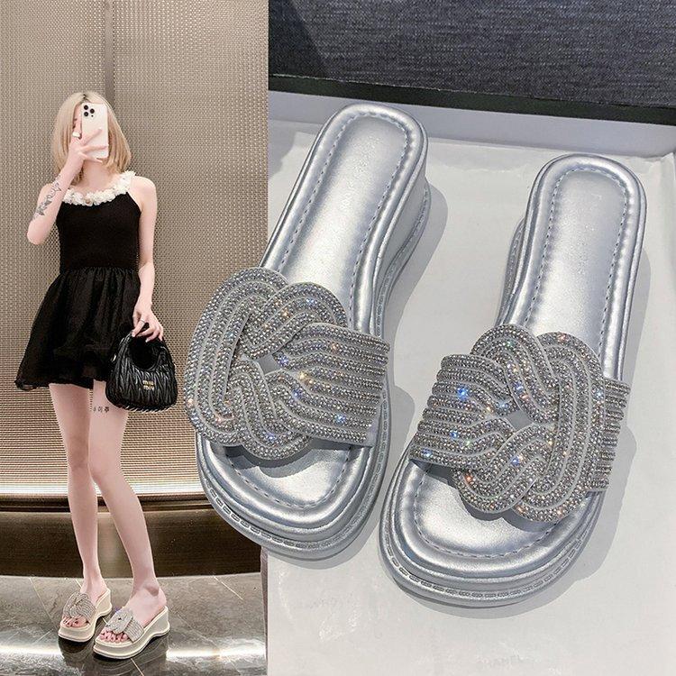Роскошные удобные тапочки на толстой подошве для женщин 2024 года, новые летние модные сандалии с бриллиантовым каблуком