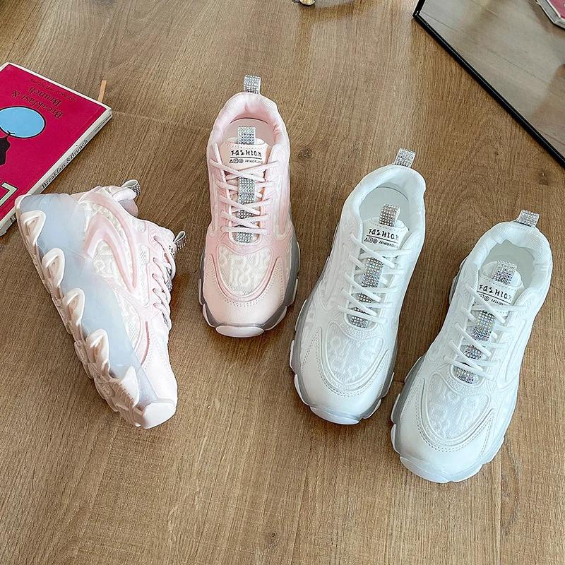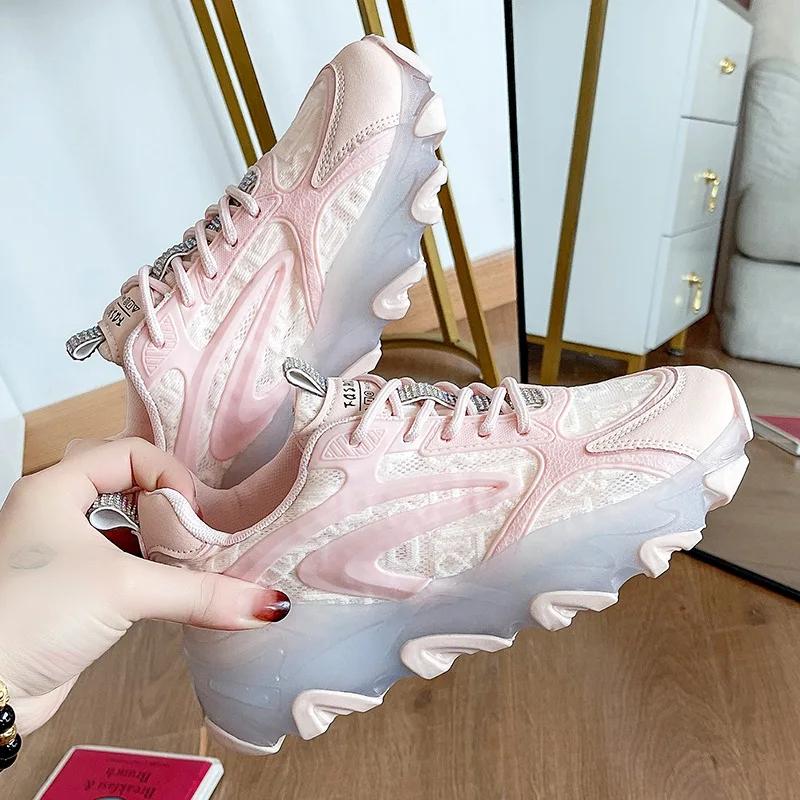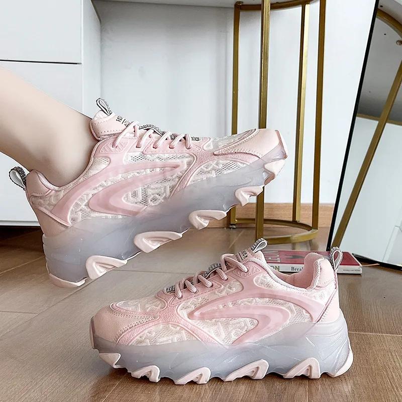 2024 Весна Новая женская обувь Повседневная толстая подошва Увеличивающая сетчатая обувь Модные легкие дышащие Zapatillas De Mujer