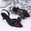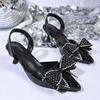 Большие размеры, босоножки на высоком каблуке, лето 2025, новая сумка-головка, тонкий каблук, стразы, бант, высокие каблуки, женские