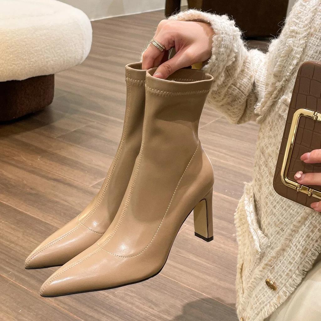 Женские ботильоны, модные, с острым носком, элегантные, короткие, на квадратном каблуке, женская обувь осень-зима 2024