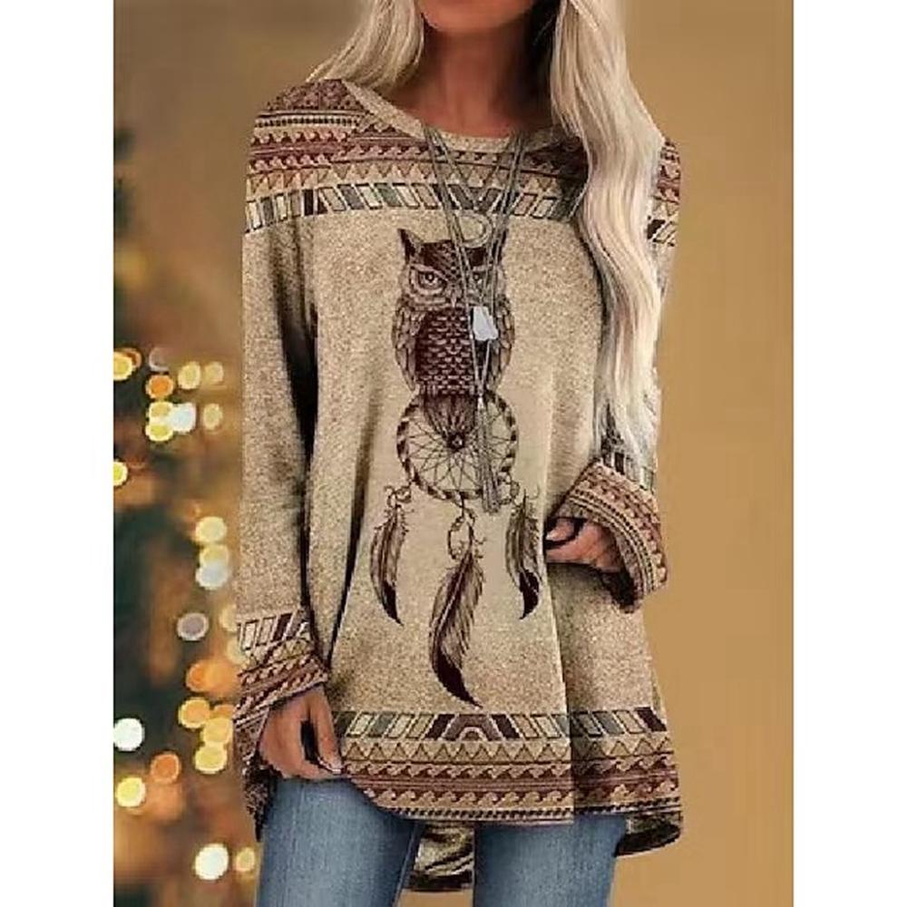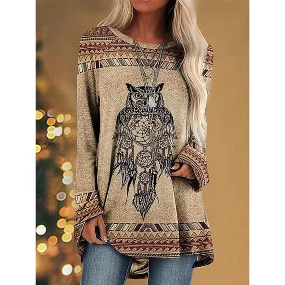 Женская футболка с 3d принтом волка, женская мода, футболки с животными, повседневные топы с длинными рукавами, футболки, винтажная футболка, свободные футболки с совой