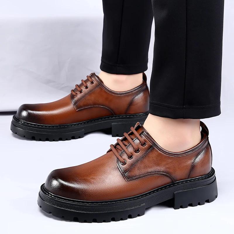 Туфли мужские из натуральной кожи на шнуровке, оксфорды на толстой платформе, деловая обувь, официальная обувь с круглым носком, винтажная обувь — купить товар онлайн с бесплатной доставкой по всему миру!