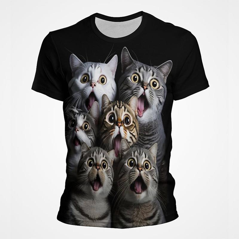Детская футболка с 3D-принтом кошки, животного, красочная, забавная, с рисунком, в стиле хип-хоп, уличная, с круглым вырезом, летняя, повседневная, модная, уличная, Харадзюку, футболка, топ
