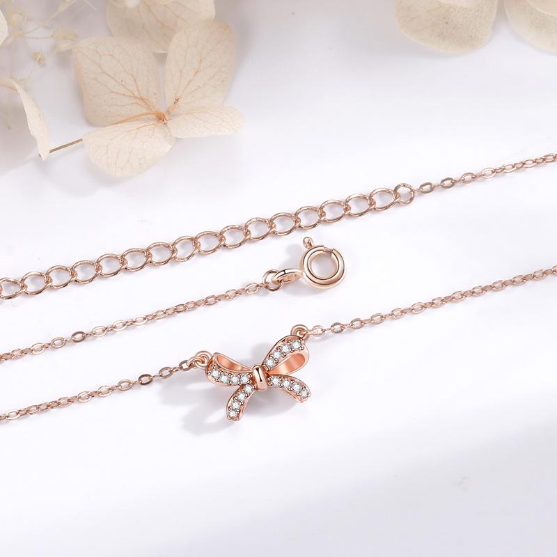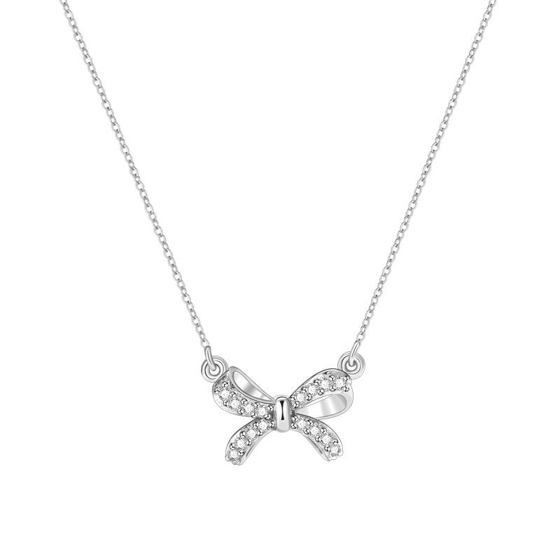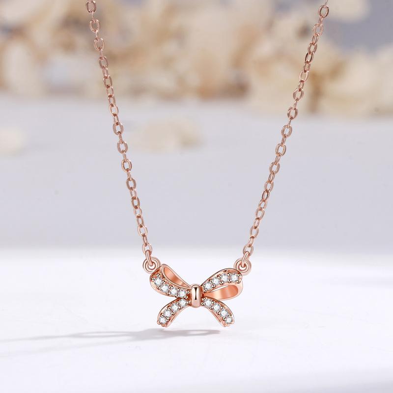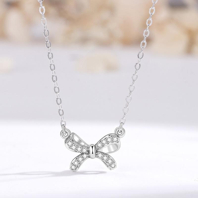 Ожерелье-бант для женщин, маленький нежный корейский сладкий бант, полностью бриллиантовый нишевый дизайн, кулон