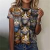 Модная женская футболка с 3D принтом Kawaii Cat Pattern, топ с короткими рукавами и круглым вырезом, летняя уличная повседневная уличная простая одежда