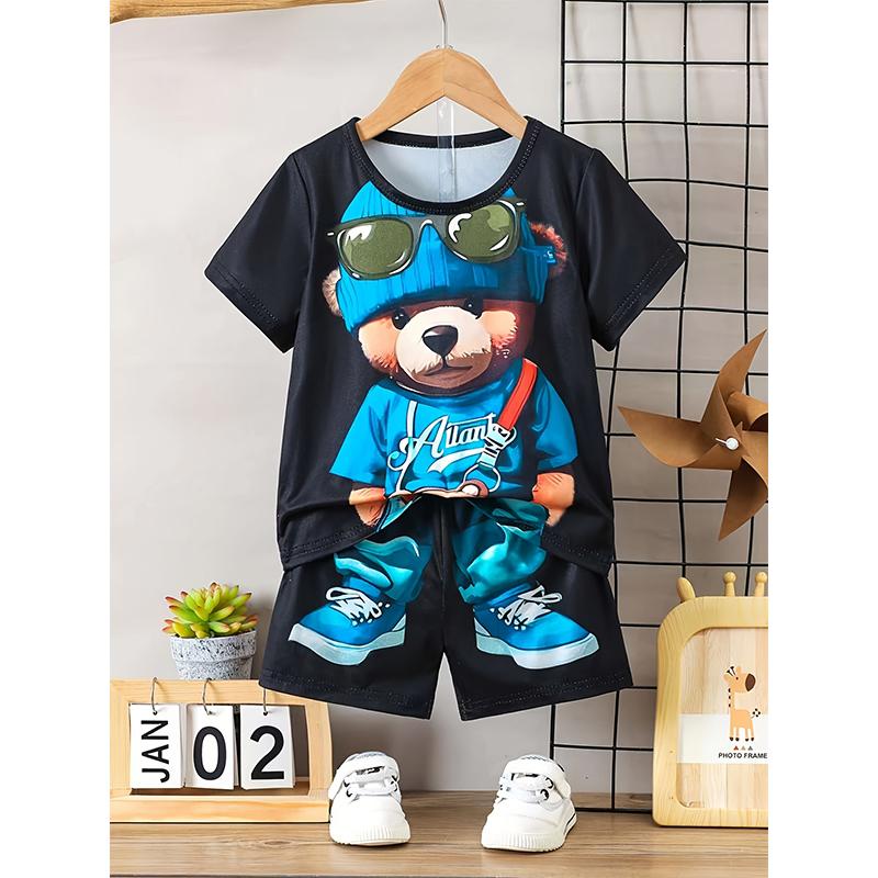 Модный детский комплект спортивной одежды с принтом 3D милого медведя, свободный мужской топ, футболка, летний повседневный дышащий освежающий костюм — купить товар онлайн с бесплатной доставкой по всему миру!