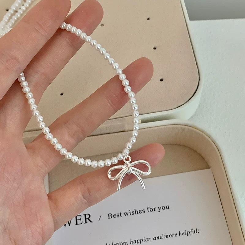 Ожерелье с подвеской в виде банта из жемчуга, женская легкая роскошная нишевая цепочка для темперамента на шею, новая цепочка на ключицу — купить товар онлайн с бесплатной доставкой по всему миру!