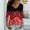 Женские осенние футболки с длинными рукавами и цветочным принтом розовых фрагментированных цветов, свободные футболки с v-образным вырезом размера плюс, топы, удобная блузка
