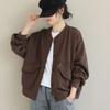 Женская хлопковая свободная литературная короткая куртка с длинными рукавами, однотонный воротник-стойка, универсальная повседневная блузка с карманами, прикрывающая мясо