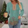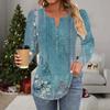 Женская мода повседневная плиссированная футболка с круглым вырезом и декоративными пуговицами и цветами с длинным рукавом