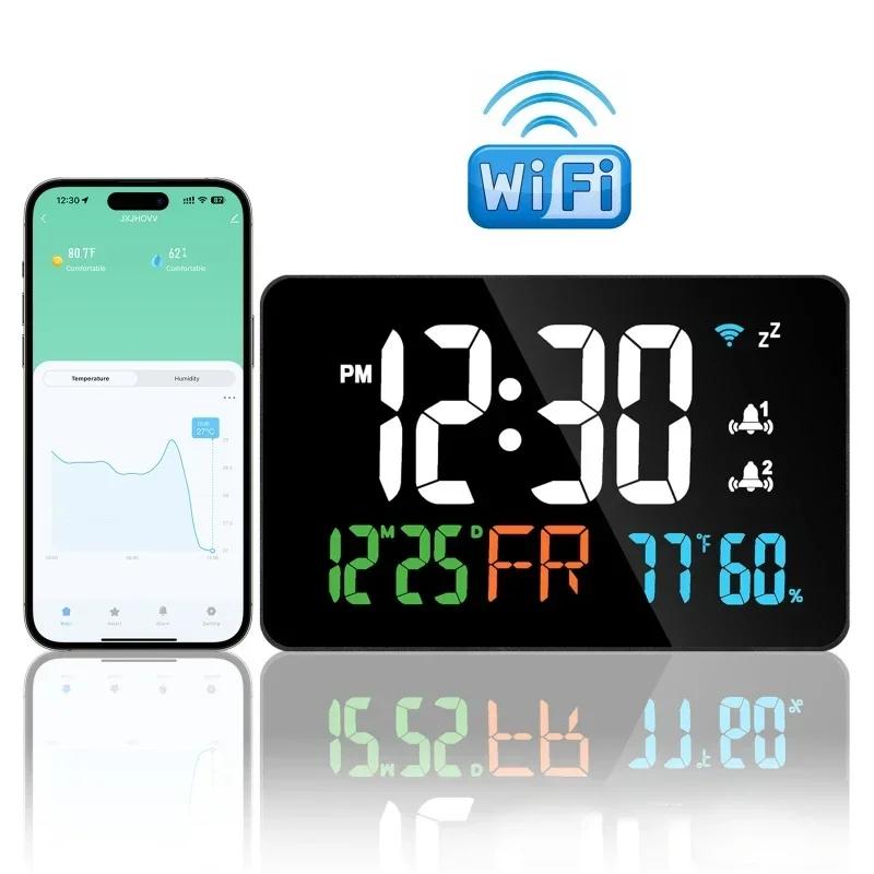 WIFI Интеллектуальные часы с датчиком температуры и влажности Светодиодный дисплей Автоматическая калибровка Сигнализация времени 4-уровневая регулировка яркости Электронные часы