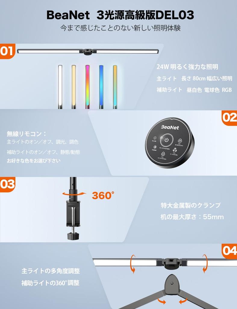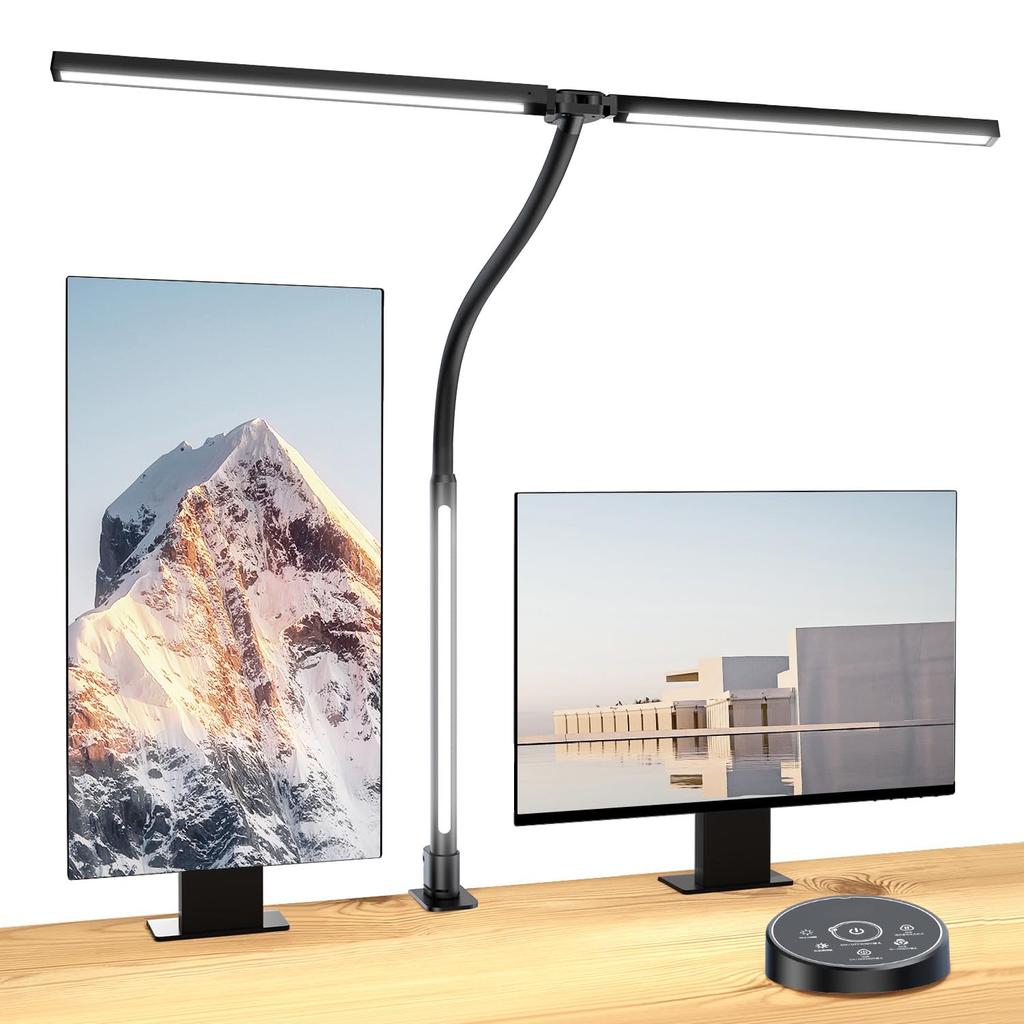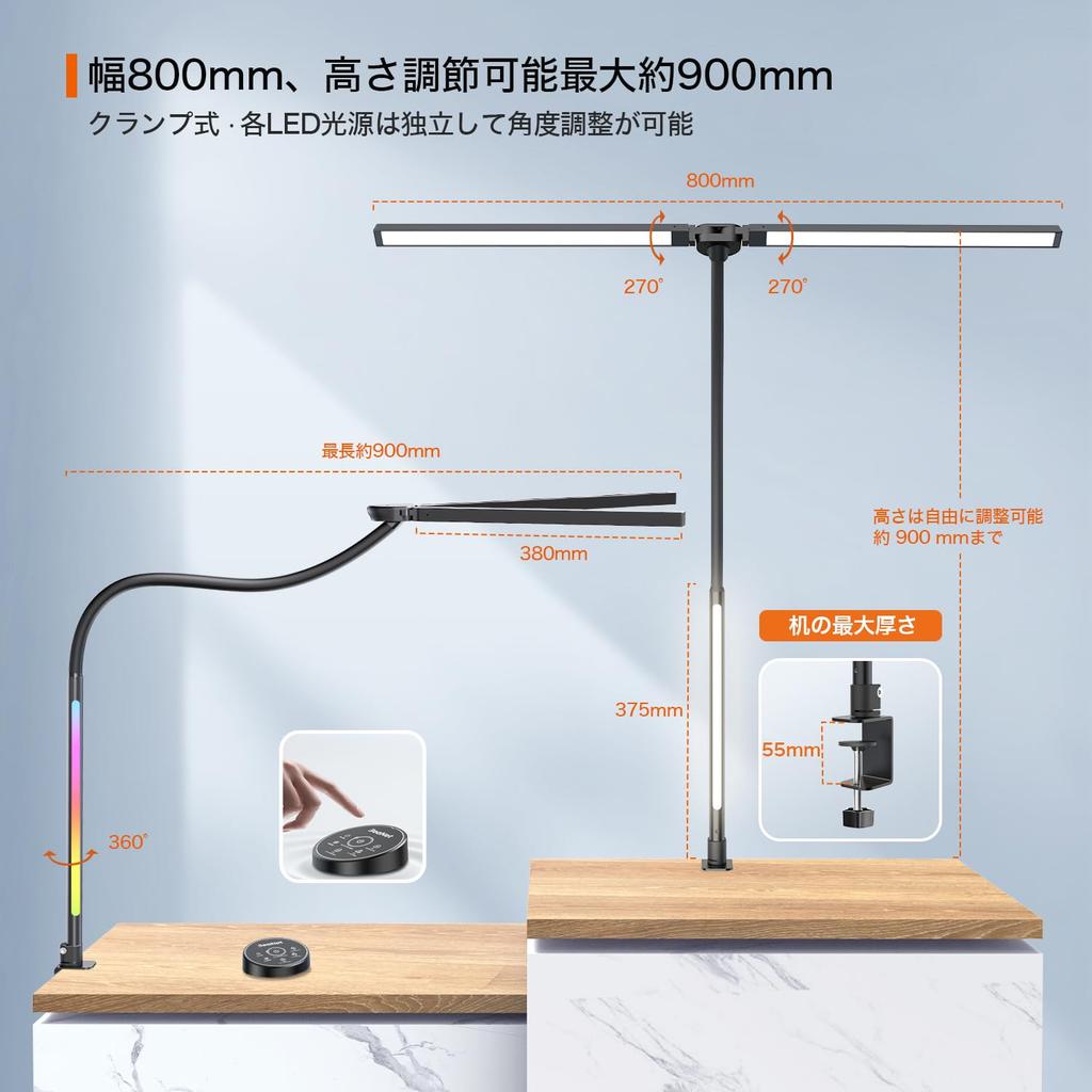 BeaNet Desk Light LED Remote Light Auxiliary 5 Level Dimming Color Clamp Desk Lamp Wide Stand Light Adjustment Tabletop Easy on the Eyes Black