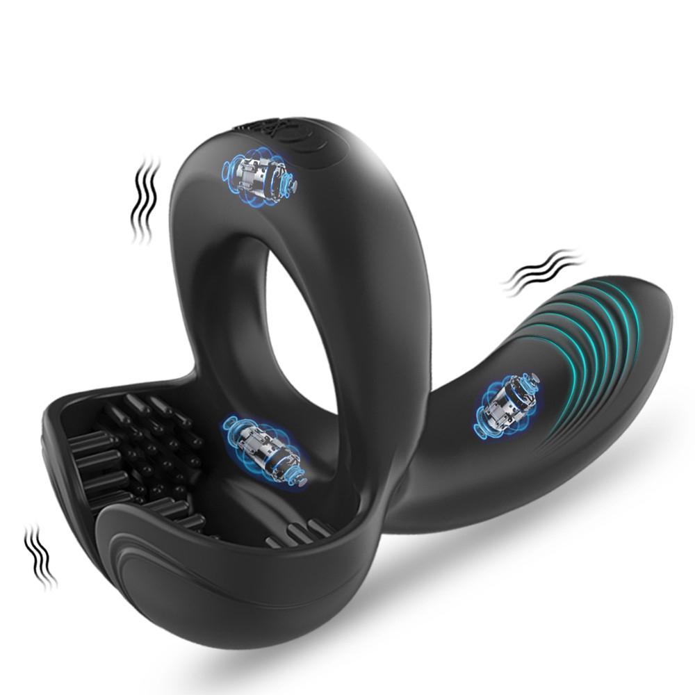 【Секс-игрушки для пар】Интерактивная секс-игрушка, среднее кольцо задерживает мужской оргазм, верхняя часть вибратора ускоряет женский внешний оргазм, а нижняя часть вибратора массирует мужскую мошонку и промежность.. Сделайте секс между мужчиной и женщиной последовательным во времени и в то же время получайте приятные впечатления.