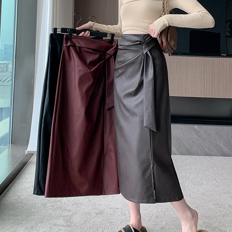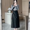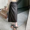 Корейский стиль Высокая талия Узкая юбка А-силуэта Женская разрез средней длины Прямая юбка из искусственной кожи с разрезом