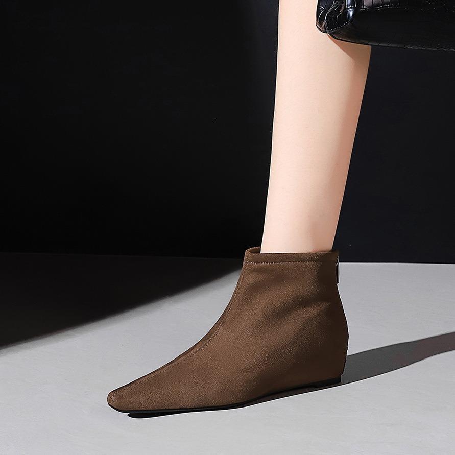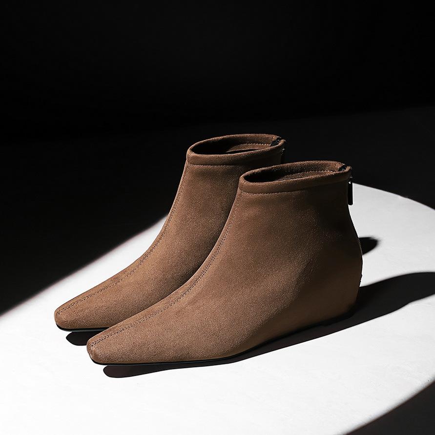 Женские коричневые внутренние короткие сапоги для увеличения высоты, модные ботильоны с квадратным носком, женские сапоги 2024 года, повседневные сапоги для отдыха на природе