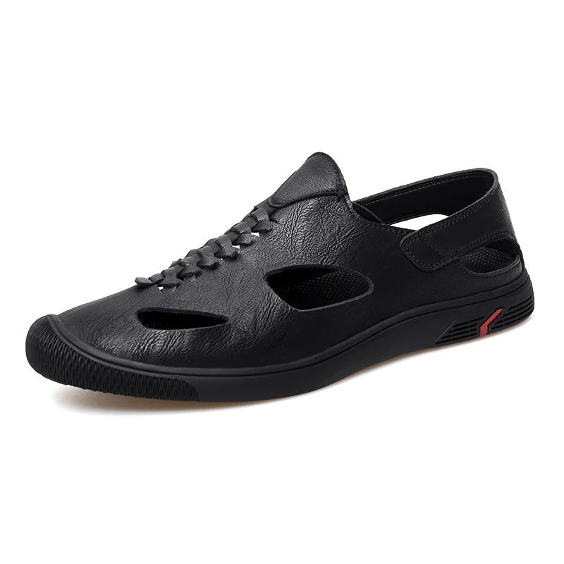2024Новые Летние Мужские Сандалии на Мягкой Подошве Повседневные Кожаные Мужские Противоскользящие Ажурные Плоские Дизайнерские Сандалии Повседневная Противоскользящая Уличная Обувь