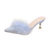 2024 Новые женские босоножки, сексуальные, меховые, летние, элегантные, на высоком каблуке, туфли-лодочки, женская обувь, свадебная вечеринка, модные тапочки большого размера