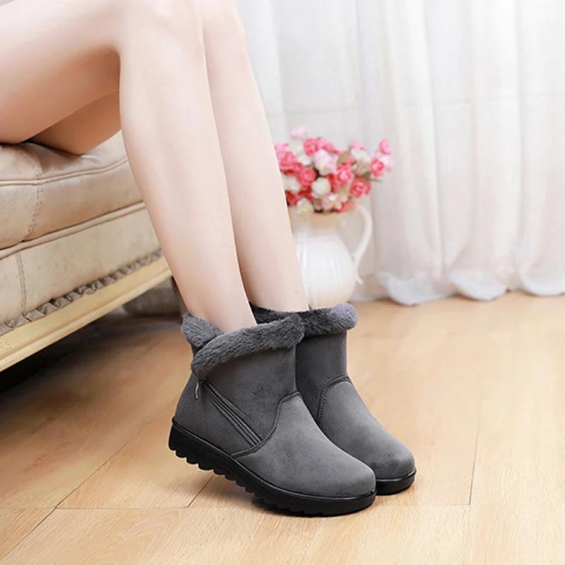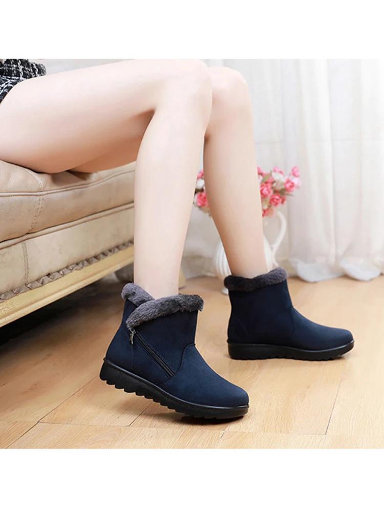 2024 зимняя обувь женские зимние сапоги теплые плюшевые плоские нескользящие хлопковые туфли модные женские ботильоны черные синие большие размеры 41 D163