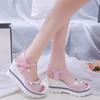 Новые женские босоножки на танкетке с пряжкой в форме рыбьего рта, повседневная обувь на плоской платформе с толстой подошвой, со стразами, элегантная женская летняя обувь