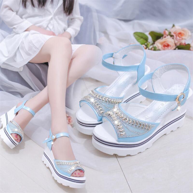 Новые женские босоножки на танкетке с пряжкой в форме рыбьего рта, повседневная обувь на плоской платформе с толстой подошвой, со стразами, элегантная женская летняя обувь — купить товар онлайн с бесплатной доставкой по всему миру!
