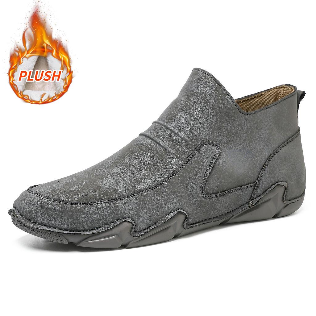 Мужская кожаная повседневная обувь весна осень мужские туфли для отдыха на плоской подошве для скейтбординга модные зимние плюшевые теплые ботинки