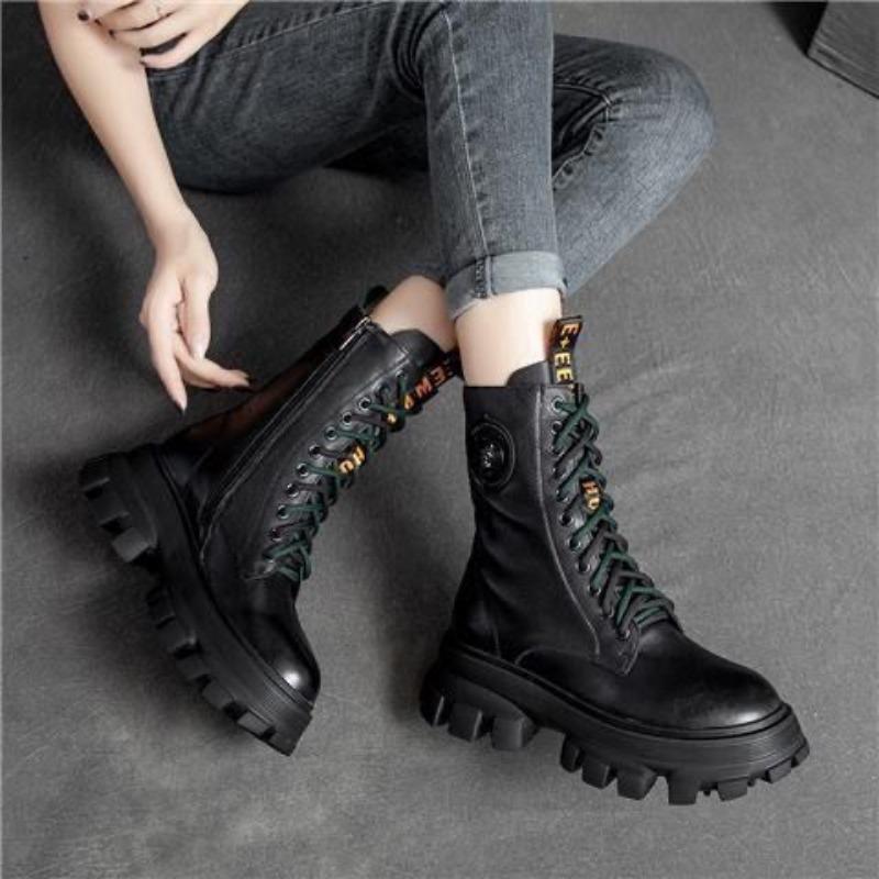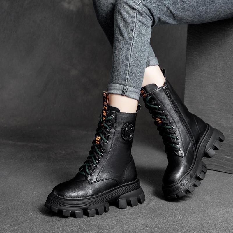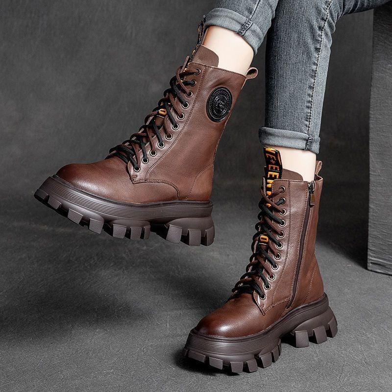 2024 короткие плюшевые зимние ботинки на среднем каблуке со шнуровкой, теплые женские байкерские ботинки на платформе до середины икры для женщин, зимние кожаные ботинки челси