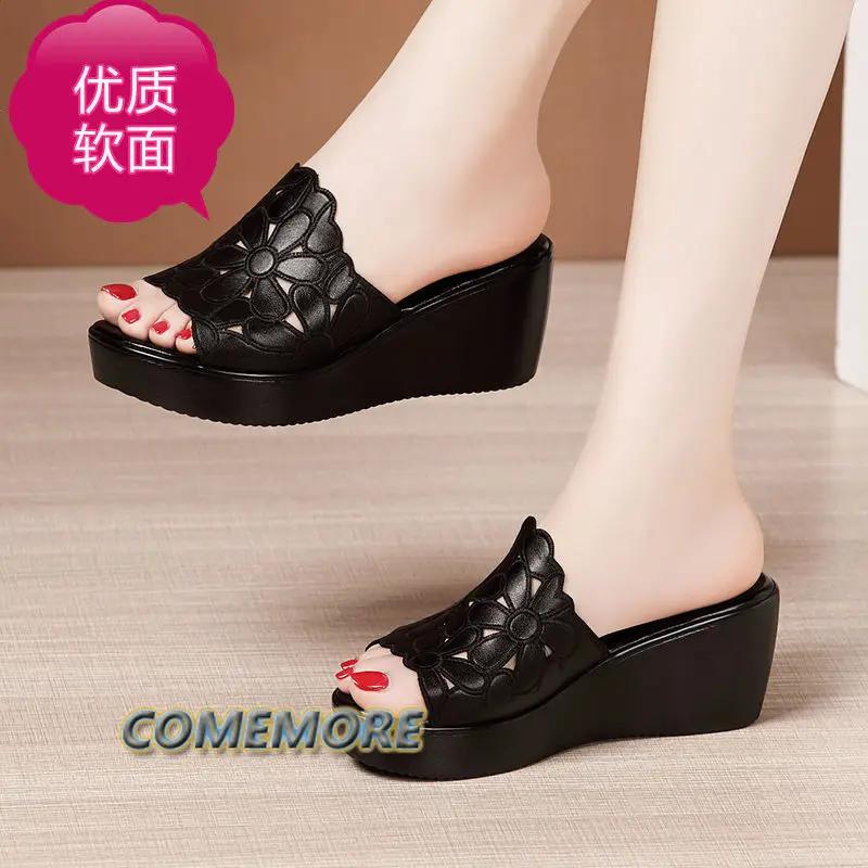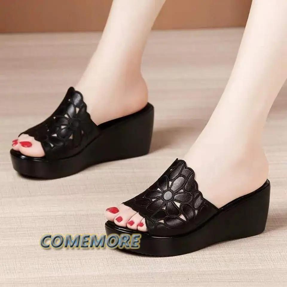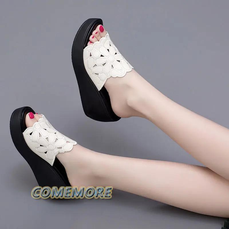 Летние женские босоножки на платформе из искусственной кожи, на танкетке, с открытым носком и высоким каблуком, женские пляжные тапочки в римском стиле