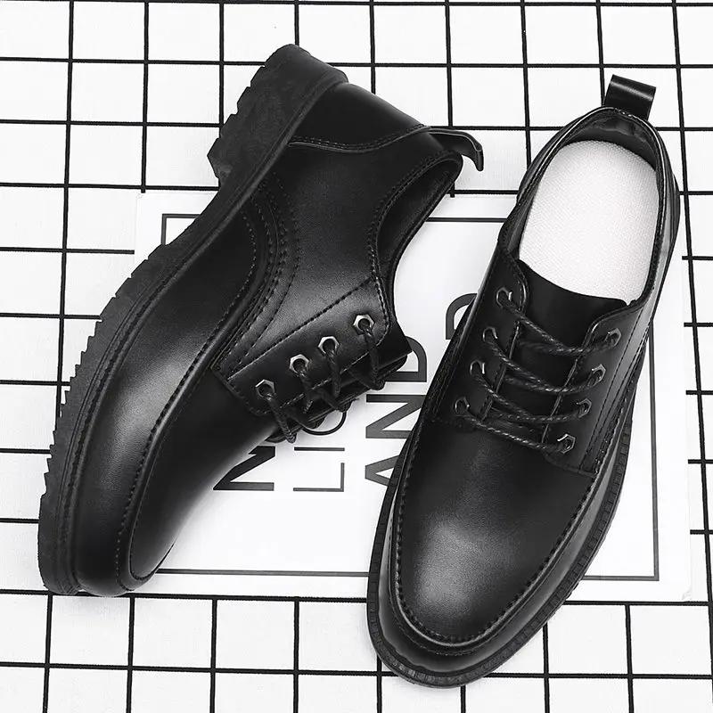 Черные кожаные туфли с круглым носком на платформе и толстой подошве для мужчин, модная мужская повседневная обувь высокого качества для взрослых, тренд 2024, удобный полиуретан