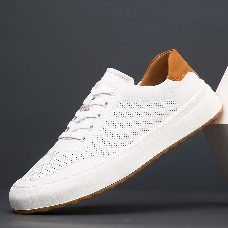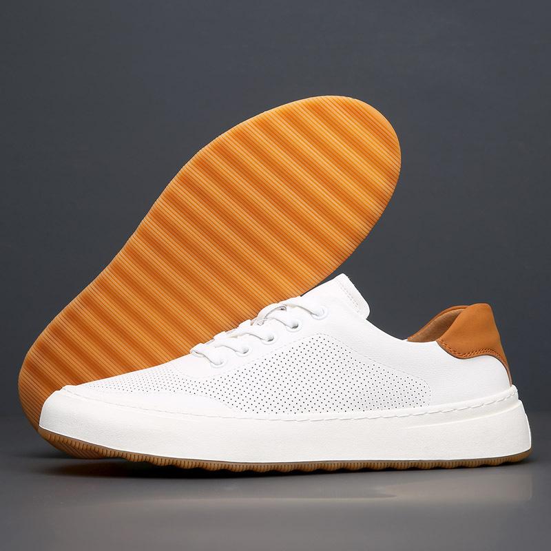 Новая мужская обувь Натуральная кожа Повседневная обувь Весна Лето Микропористая плоская обувь Обувь для скейтборда Кроссовки на шнуровке