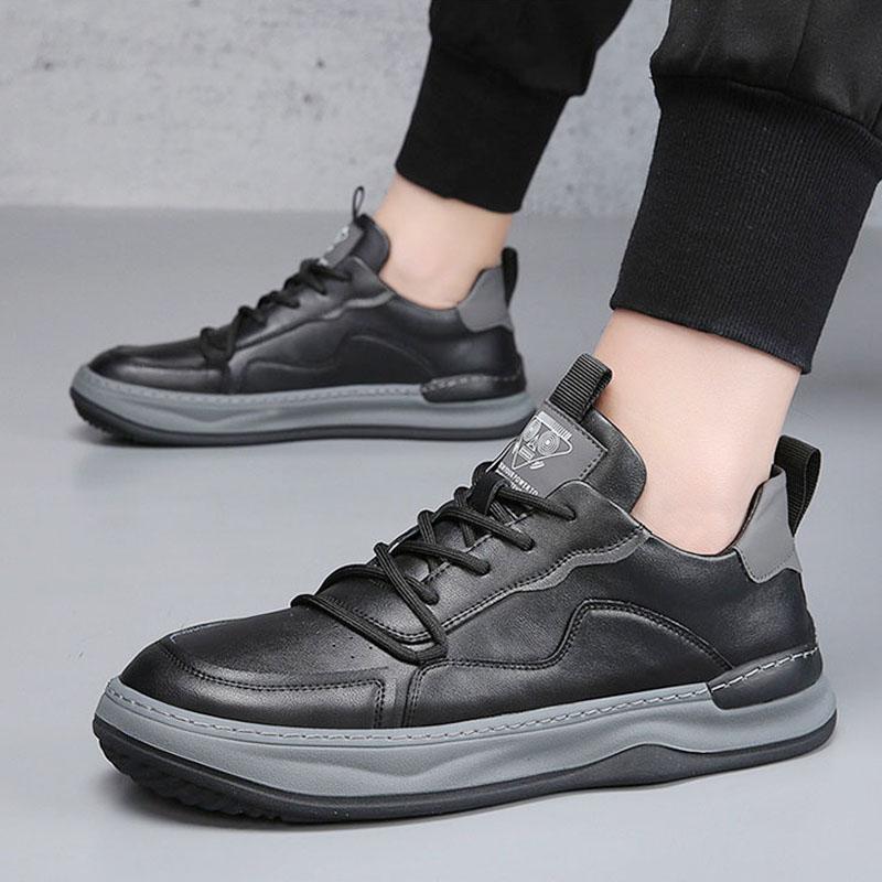 Новые туфли для мужчин Повседневная обувь из натуральной кожи Трендовый спортивный стиль Дышащие туфли из коровьей кожи Молодежные кроссовки на шнуровке