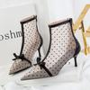 Ботильоны элегантные женские вечерние на высоком каблуке летние модные повседневные женские ботильоны 2024 года лето дышащая сетка горошек полый бант