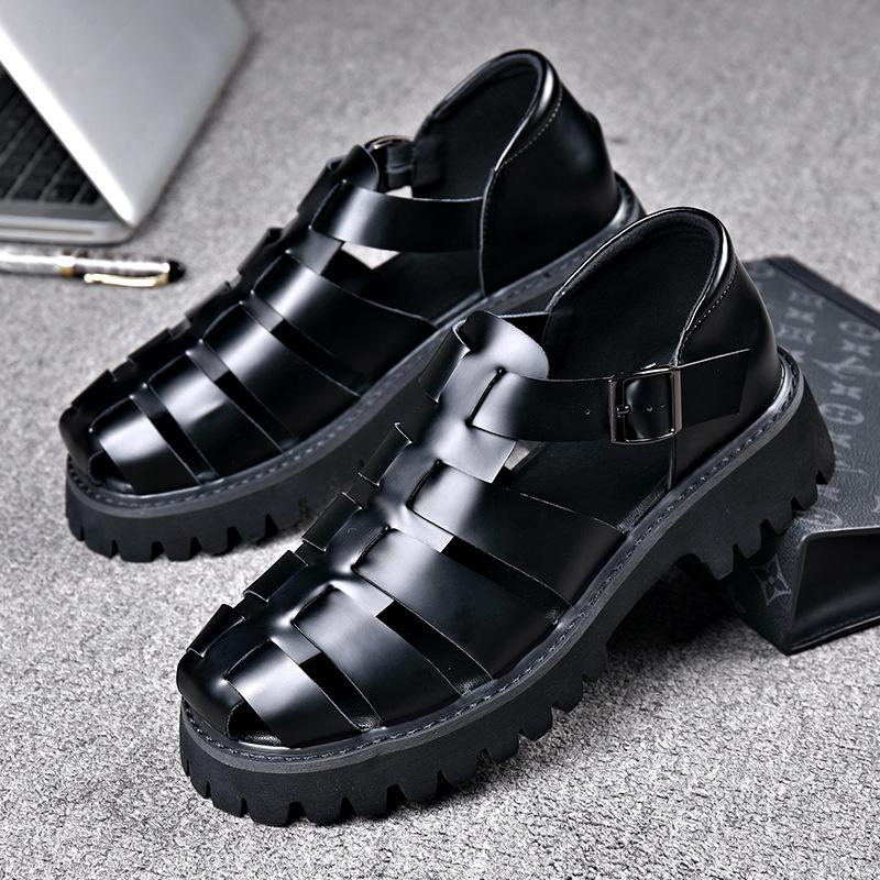 Сандалии из натуральной кожи на платформе, уличные кроссовки, пляжные резиновые шлепанцы, водные треккинговые летние мужские классические римские сандалии, тапочки