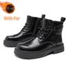 Модные мужские зимние плюшевые ботинки на шнуровке, натуральная кожа, мужские мотоциклетные ботинки, новые удобные повседневные кроссовки с высоким верхом