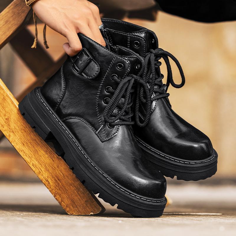 Модные мужские зимние плюшевые ботинки на шнуровке, натуральная кожа, мужские мотоциклетные ботинки, новые удобные повседневные кроссовки с высоким верхом — купить товар онлайн с бесплатной доставкой по всему миру!