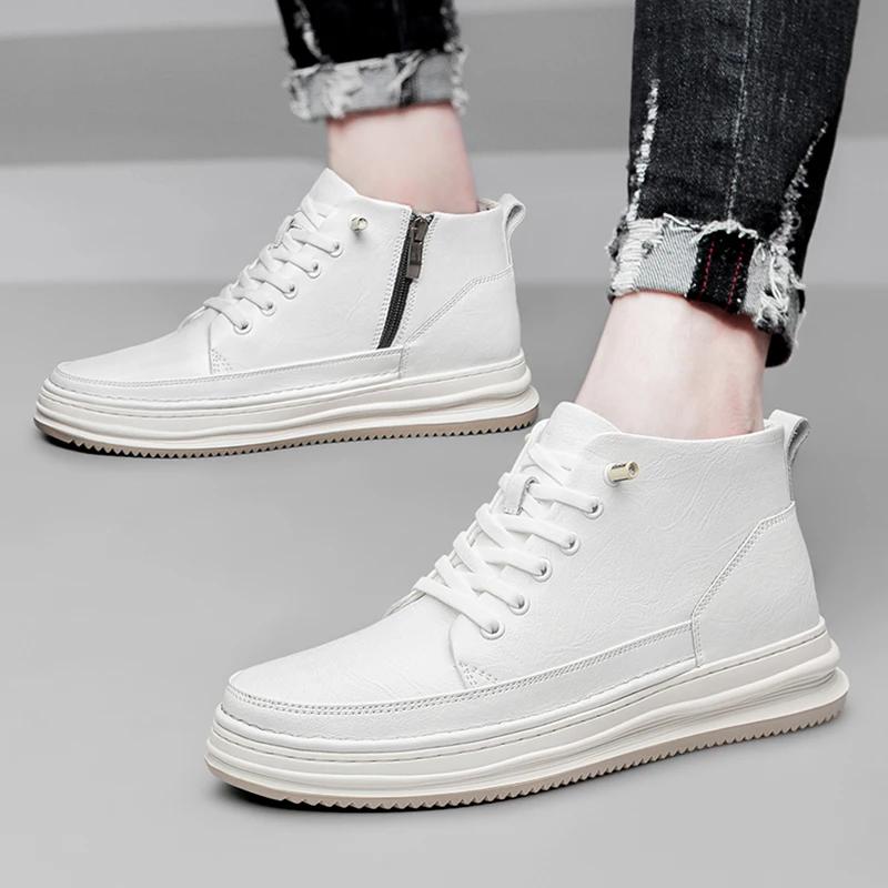 Новые мужские туфли из натуральной кожи, повседневная обувь, роскошные мужские ботильоны, толстые мотоциклетные ботинки, высокие мужские кроссовки белого цвета