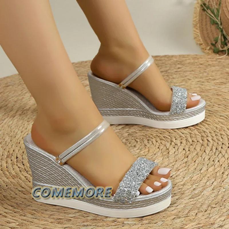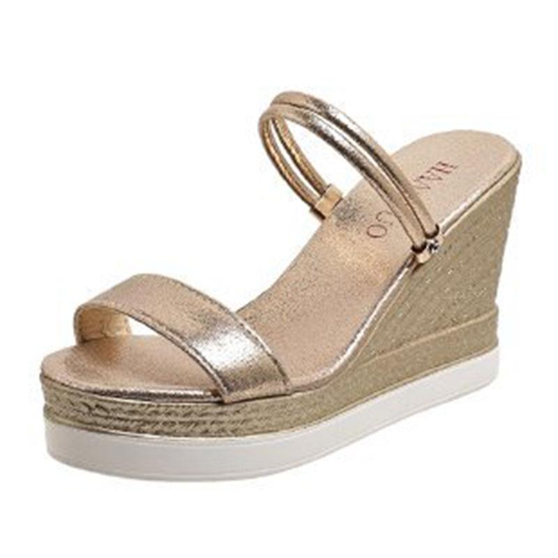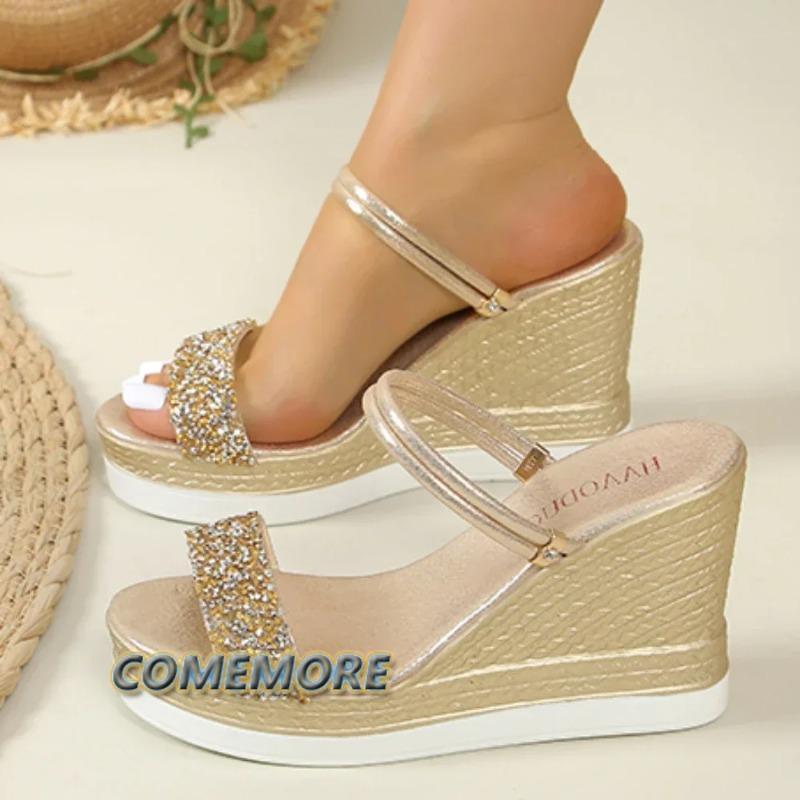 Босоножки на танкетке Женские 2024 Новые Туфли на высоком каблуке Летняя обувь для женщины Роскошная дизайнерская обувь Босоножки на платформе Уличные шлепанцы Золотые