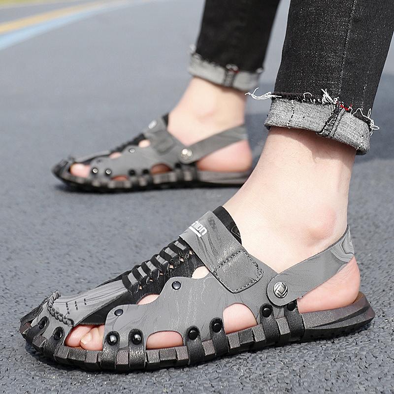 Летние сандалии из кожи для мужчин, пляжная обувь, роскошные дышащие повседневные сандалии, мужские туфли для ходьбы, нескользящие тапочки, большой размер 47