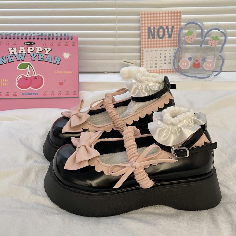 Женские модные лоферы на платформе, разноцветные туфли на массивном высоком каблуке с розовым бантом, туфли Мэри Джейн, женские туфли из лакированной кожи с ремешком на щиколотке