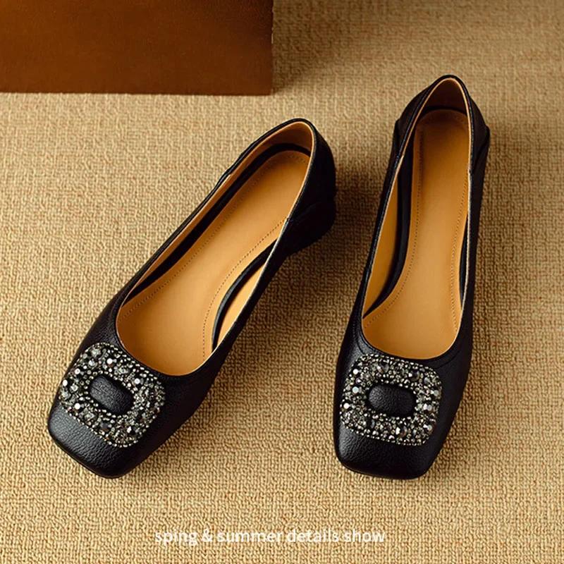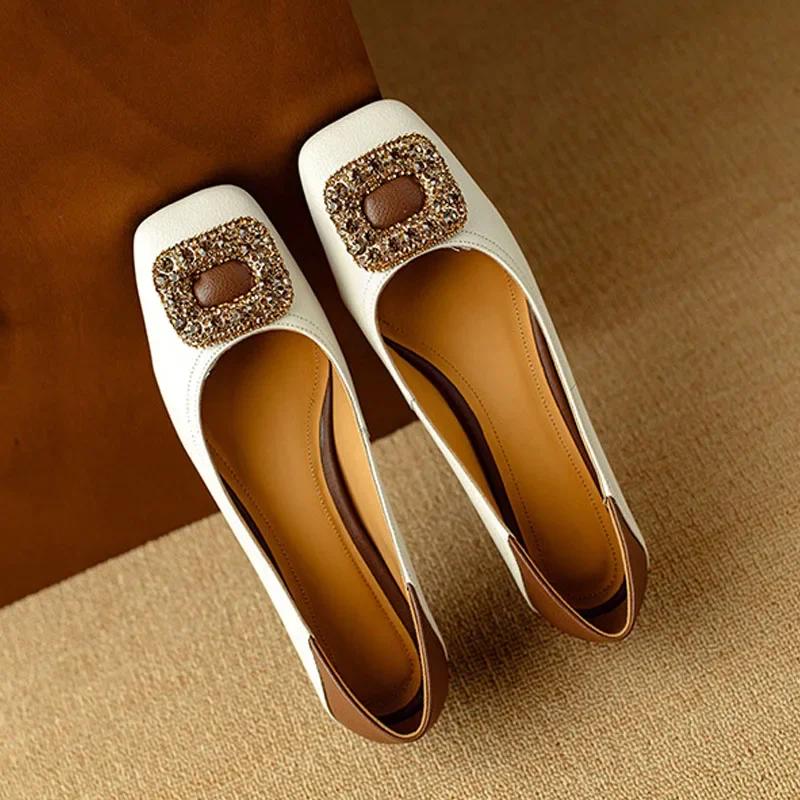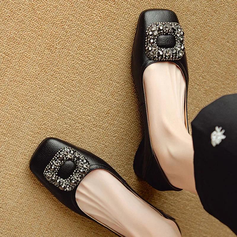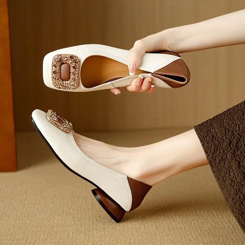 Новые женские туфли на каблуках, модные туфли со стразами и квадратными пряжками, туфли на каблуках из мягкой кожи, женские рабочие туфли, удобные туфли-лодочки с низким каблуком и квадратным носком